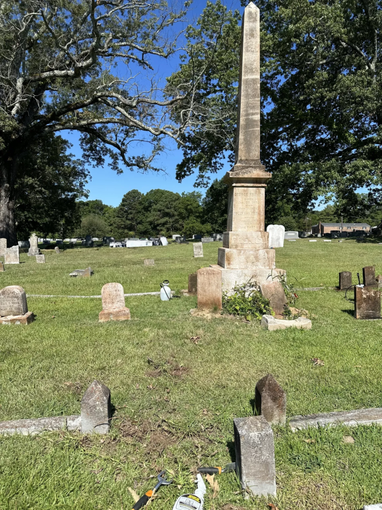 Also, over the last few months, I have been working on the monument for Dr. French. This is what it looked like when I first saw it before we cut the trees down.